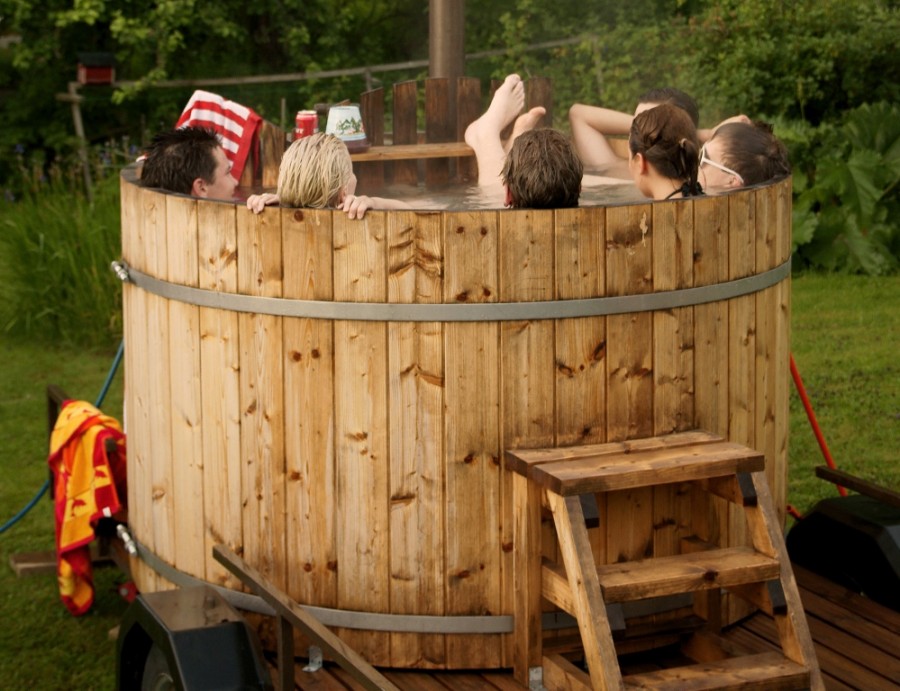 -traditional outside baths in oak wood with spring water